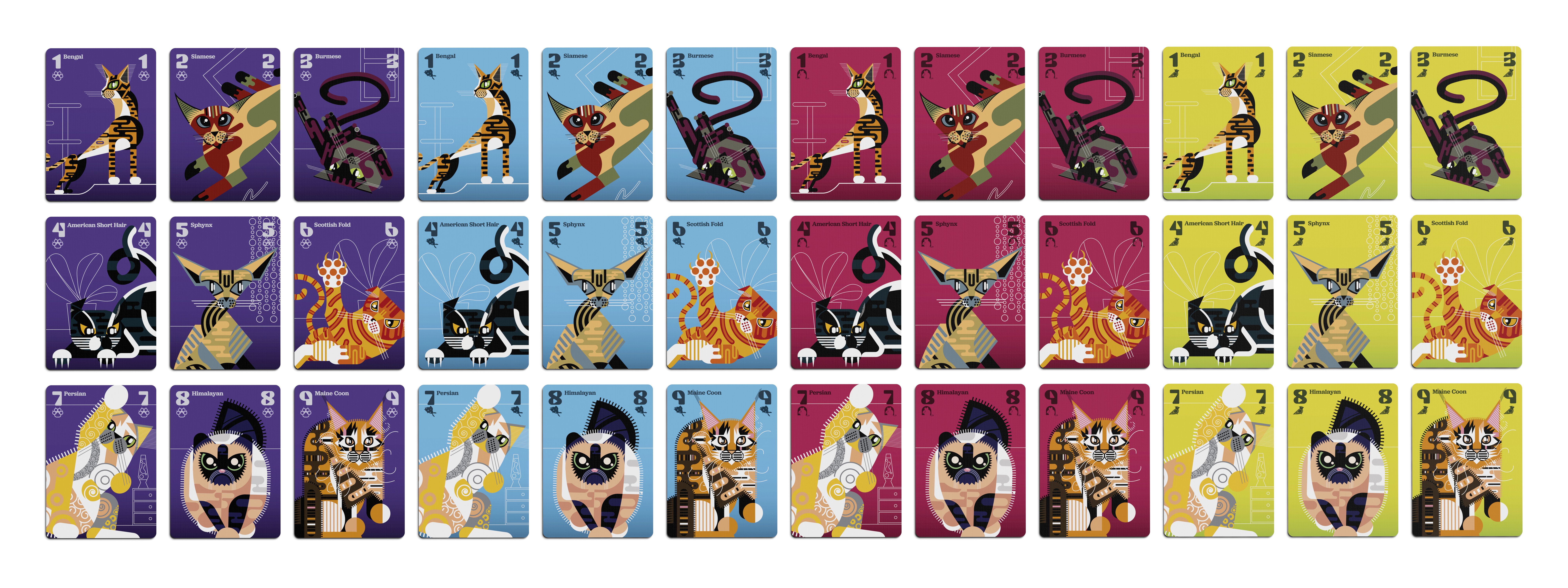9 Lives builds on the rich trick-taking foundation (Spades, Heart, etc), but then turns it sideways.