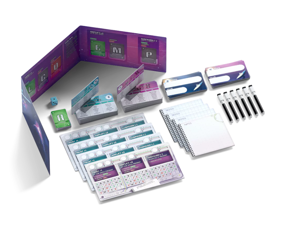 Upgrade your copy with chunky, galactic dice and foldable dice displays that help you keep track of your words!