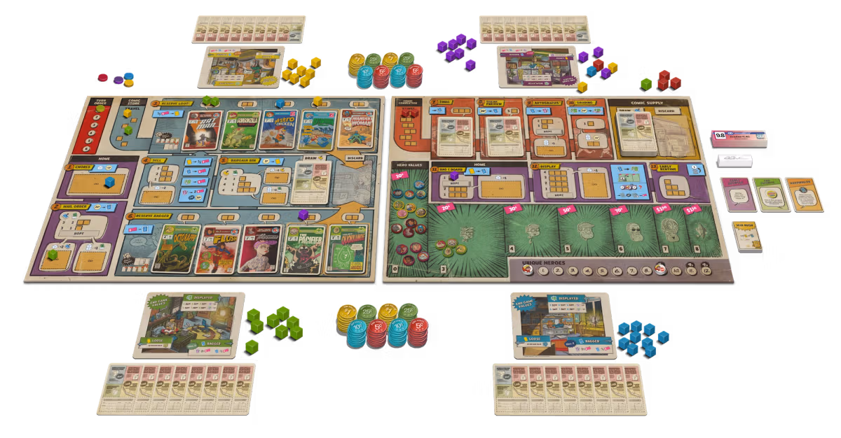 In Bagged & Boarded, you're a kid who loves comics. You can't merely focus on finding your favorite issues, though. You also need to make enough money to afford them!By savvy investment of your time, allowance, and chores money, you'll amass an impressive collection in no time! But wait—then what? Do you sell your key issues to buy others? Or do you put them on display, showing them off but increasing that series's value for everyone else?