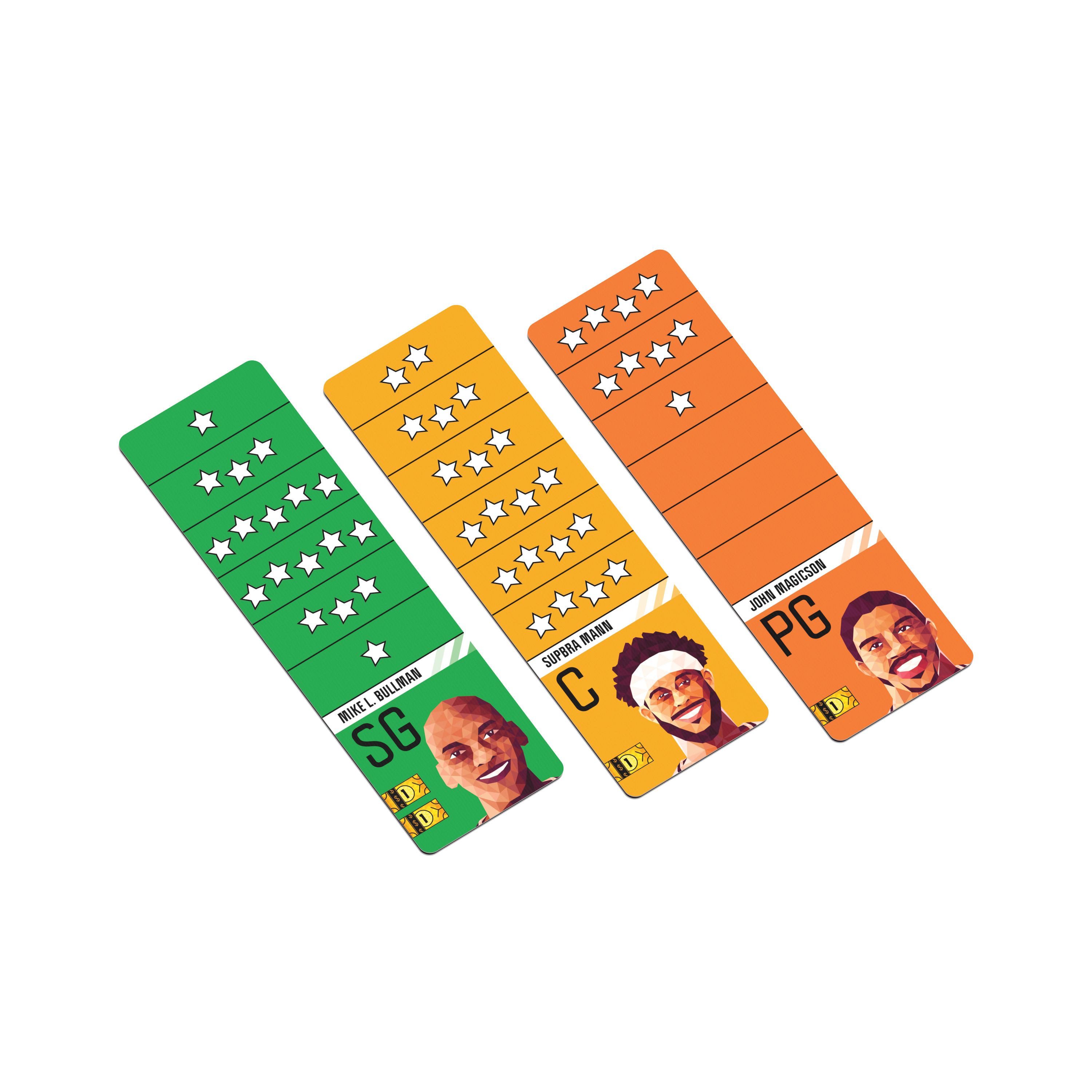 Each one features a unique team name and logo, plus a handy turn reference. Track your players at their various positions!