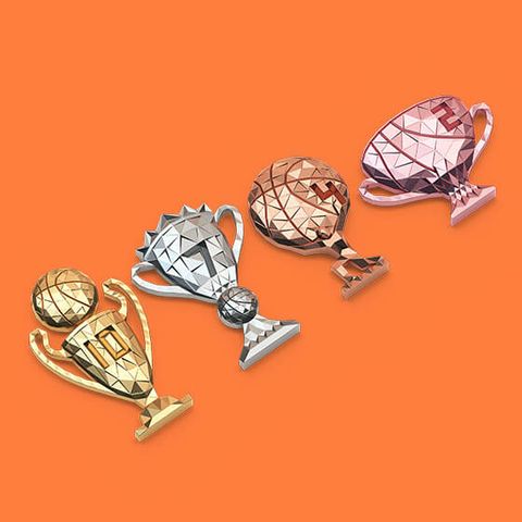 Want to make your championship victories all the more special? We're offering an upgrade worthy of a Basketboss legend with 24 gleaming metal trophies for first, second, and third that will stand out on every shelf!