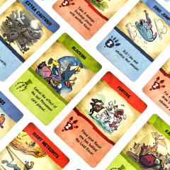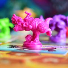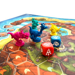 Grab your dinosaur miniature and race toward the finish line. Every character has a unique ability, and each game board offers a unique twist.Play cards to advance and throw projectiles at your foes with different trick shots to hinder their progress. Red cards are extra powerful, so choose wisely when to use them—they cancel out if too many players play them in the same round. Play a single race in 20 minutes or compete across 4 tracks in Cup Mode to gain power-ups between races and prove who's the best dodo riding their dinosaur!