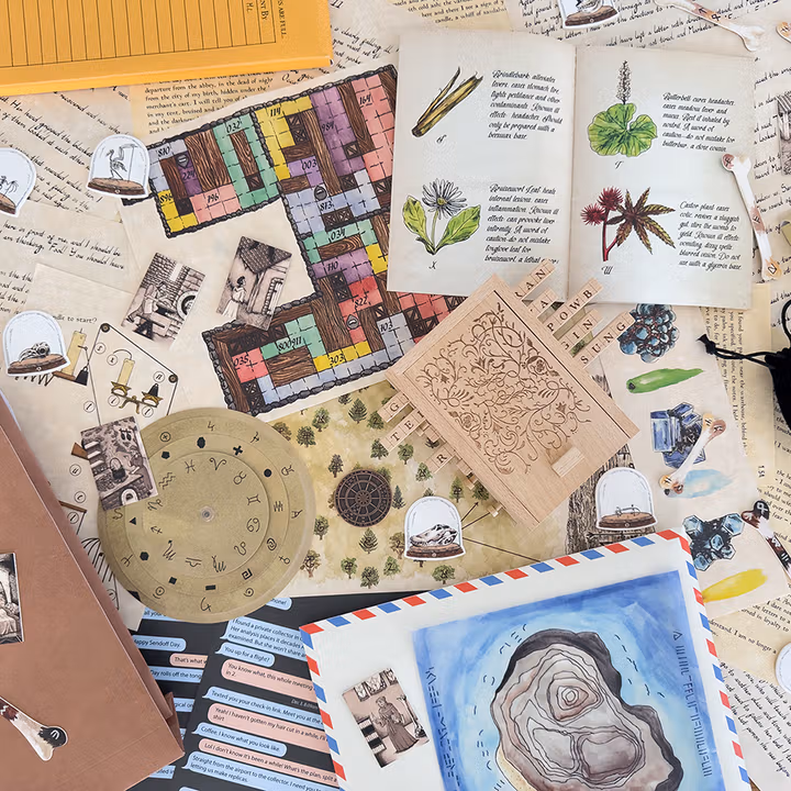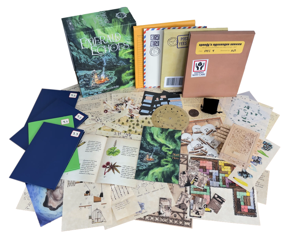 Emerald Echoes is a narrative tabletop puzzle adventure that intertwines board games, escape rooms, and interactive storytelling. Following the correspondence of two historical researchers, embark on a fantastical journey to uncover the secrets of a legendary alchemist. With beautifully illustrated puzzles, tactile artifacts, and an engaging narrative, each piece of the puzzle brings you closer to unraveling a mystery of the past.