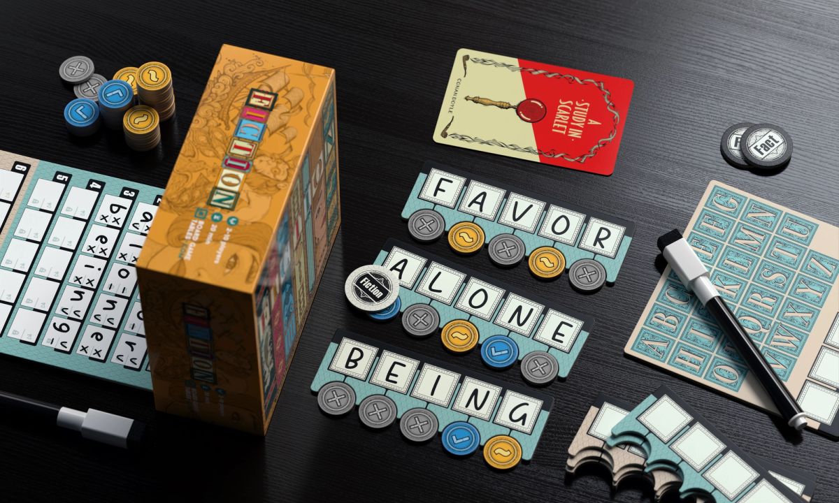 Fiction is a Wordle-inspired game of deception. One player is the Lie-brarian and will choose a secret word from a classic work of literature. All the other players work as a team to guess that secret word as quickly as possible.The Lie-brarian will tell the players if their letters are present in the word. Be careful, though, as each clue will have one letter be a lie!