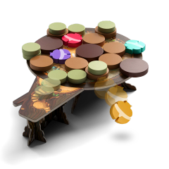 She has a poster featured in the Board Game Geek Artist series. Her husband and children are always involved in the projects, from mandatory play testing and prototyping, to artistic suggestions.