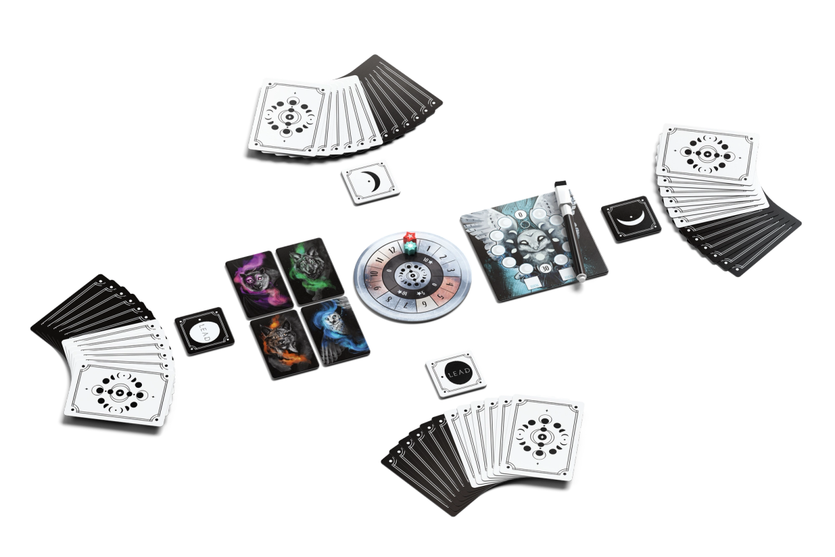 Lunar is a quick-playing, trick-taking game for two or four players in which players combine the phases of the moon and nocturnal animals to form cards played into tricks, which are combined to determine their value within each trick.