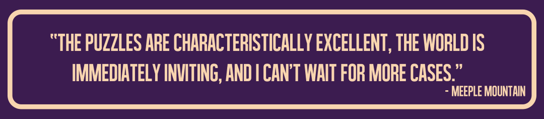 Featuring gorgeous artwork, memorable characters, and humorous writing, Ministry of Lost Things transports you into a rich and wonderful world that you won’t want to leave. High-quality components, a wide variety of puzzles, and an integrated hint system make this game a perfect entry point for beginners and an instant favorite for seasoned players.