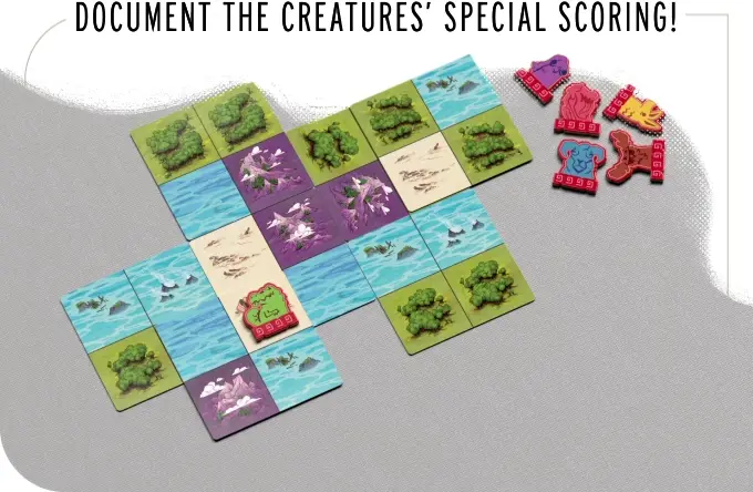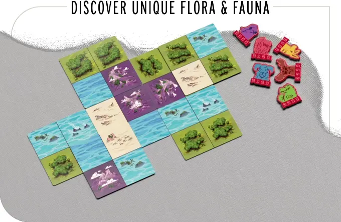 Explore by laying overlapping tiles and score based on the wildlife's unique scoring conditions.