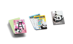 In Panda Panda, players carefully manage their cards to try to make specific hands. On a turn, players can discard a card, draw from the deck, or draw from an opponent's discard pile. If a player discards an "A" card, everyone has to pass one card to the right.