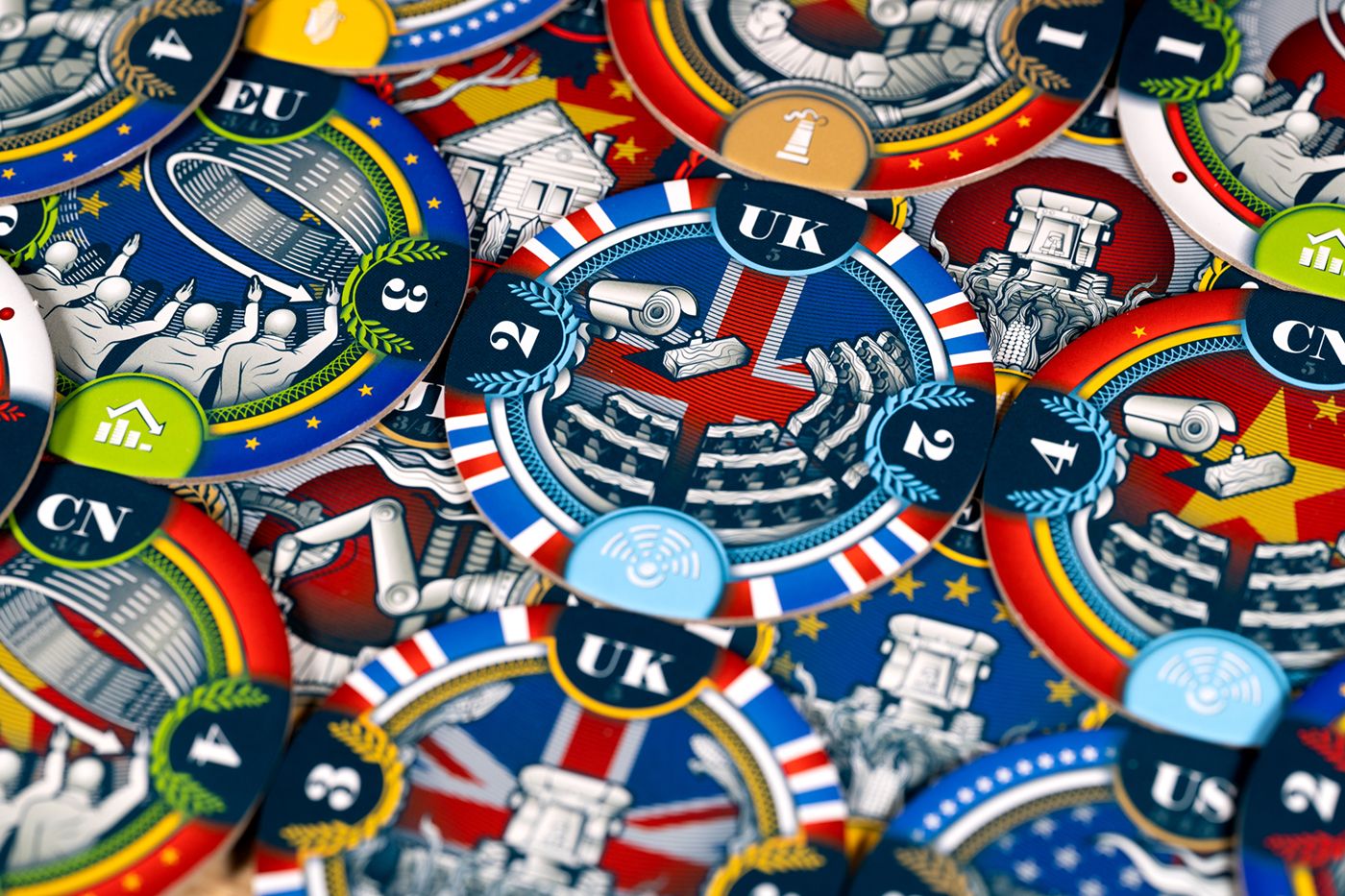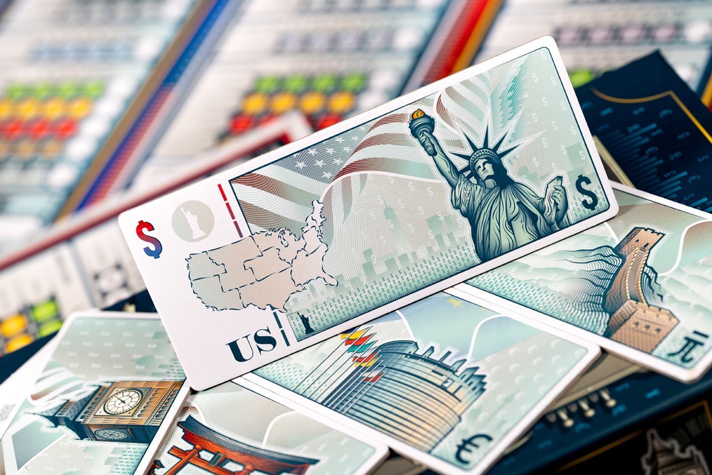At the end of the game, total up all your winning bids by the amount of companies and special bonus points. Whoever has the most points wins. But be careful though - if you are the country who spends the most during the game, you’re out! It's a super interactive experience that turns auction gaming on its head.
