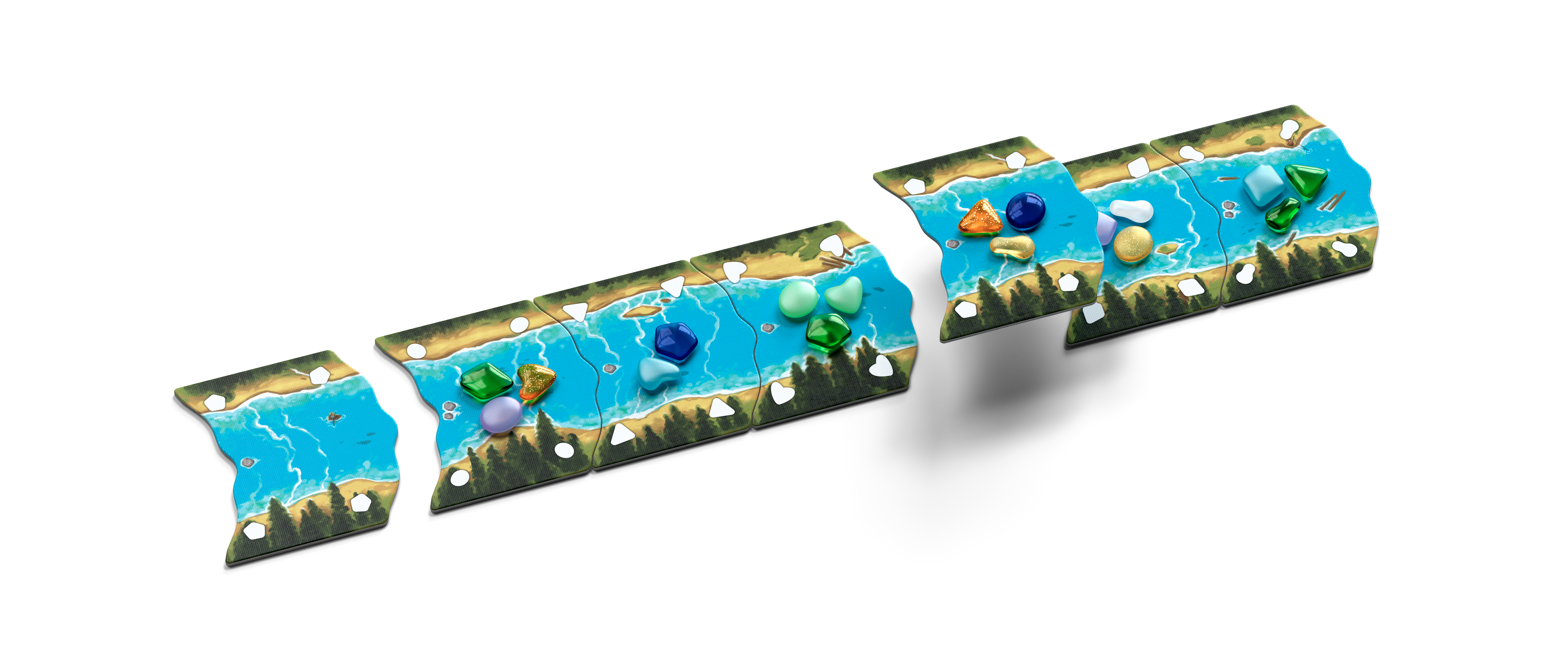 You'll play as one of these pioneers, taking glass from the market of river tiles and strategically placing them on your player board to score the most points.