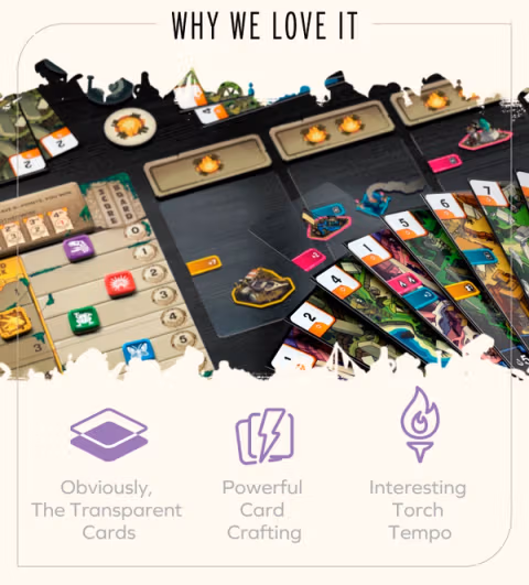 Designed by John D. Clair (Mystic Vale, Ready Set Bet, Space Base), use the game's inventive transparent cards to track your upgrades!