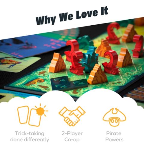 Sail is a logic-driven deduction game. But, your plans get a wrench thrown in because of the lack of communication! As you play, you’ll become better at understanding the way your partner wants to play. Passing cards, winning tricks in certain ways… try and read their mind to defeat the kraken!Leverage your asymmetric pirate power to give your team the edge. You’ve got to use every tool you can!