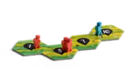 Choosing to hike or buddy-up is a big decision! Be careful: go onto the board too eagerly and your opponents might block you or freeload off of your tiles. Go too late, and you might not have enough time to score!