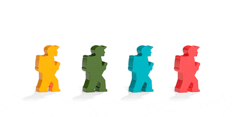 Add extra delight to this colorful small box with 53 bigger, chunkier screen-printed meeples. Which hiker do you identify with most?