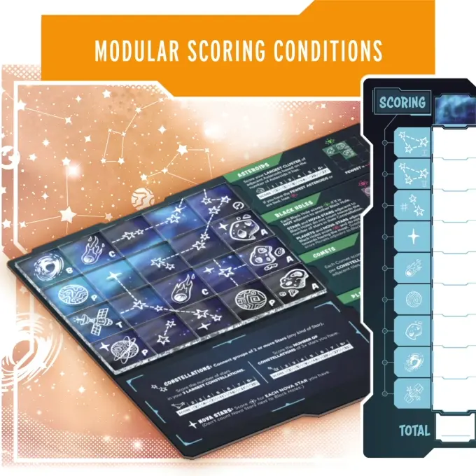 You'll connect Constellations, build belts of Asteroids, and study your Satellites with a modular scoring system.