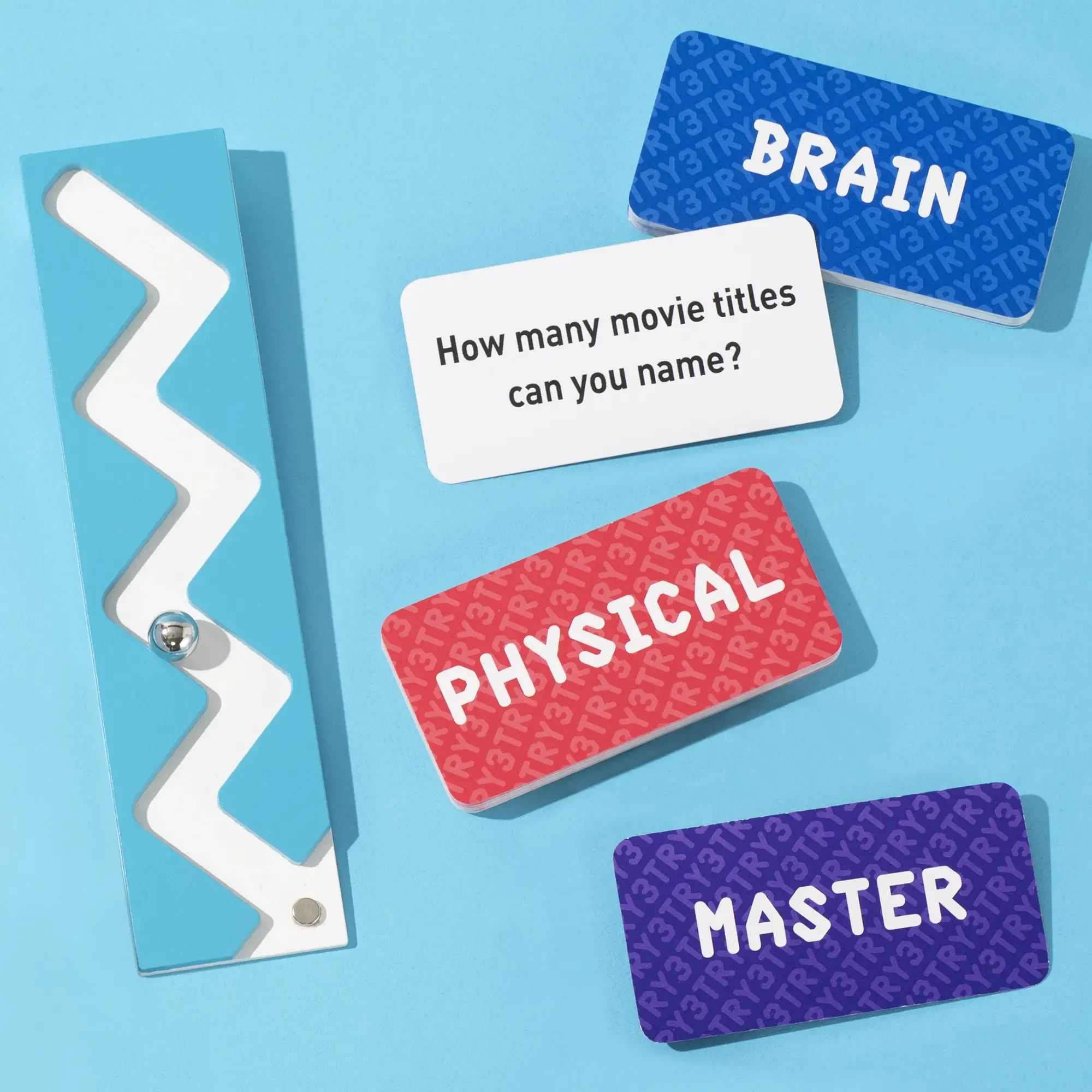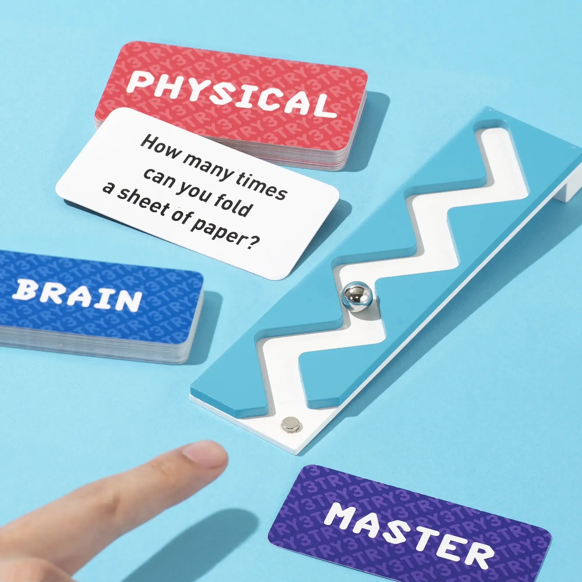 Draw a card and declare the number of times you think you can do the action listed on it. If you're the most ambitious, you'll get to try first! If you can't complete the challenge before the ball on the 3-Second Counter rolls all the way down, your rivals will get a chance.