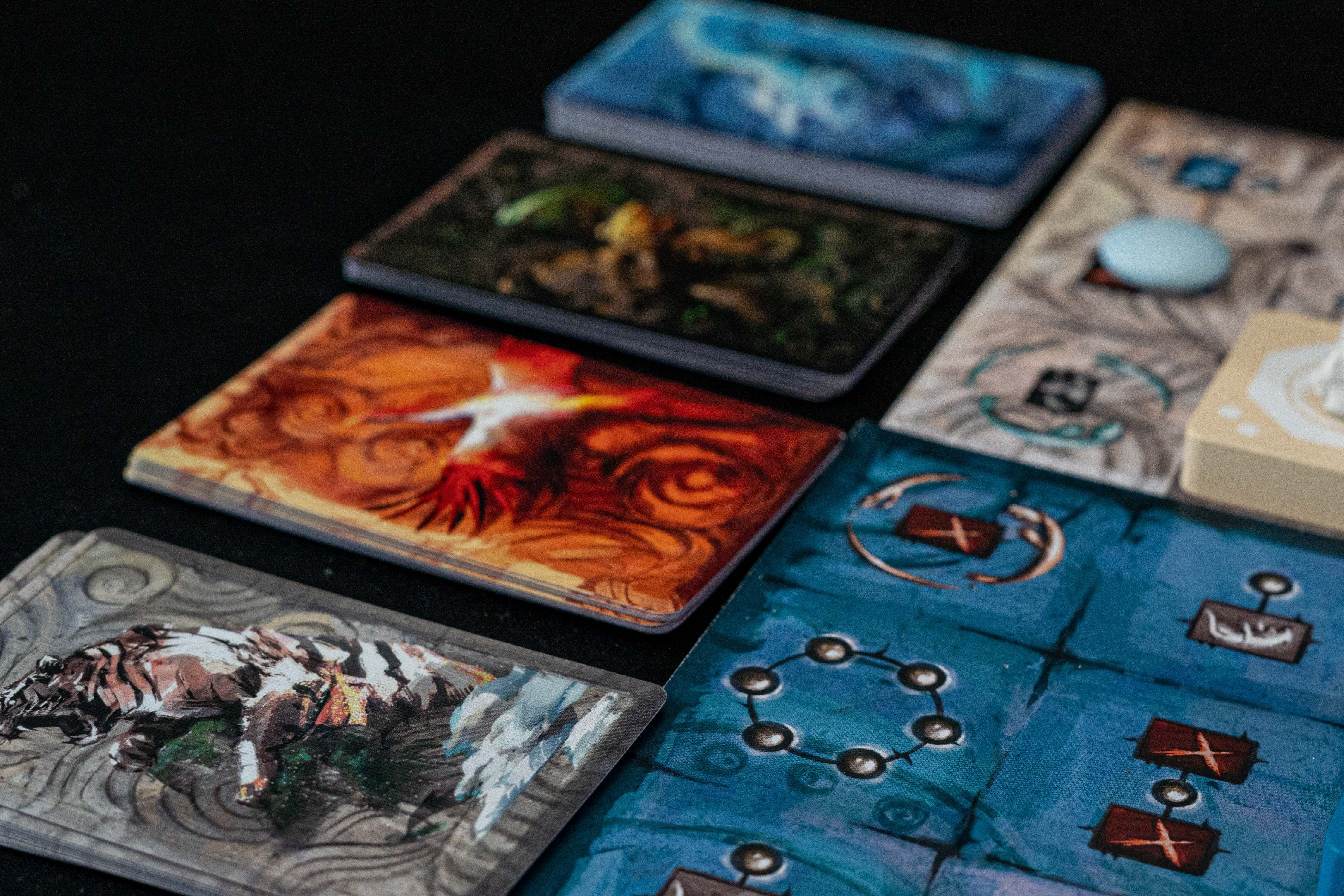 In Azure, players position their stones to gather qi (cards) and wisdom (points) from the realm. They also compete to bring the Auspicious Beasts to their aid. The first player to reach the end of the path of wisdom wins.