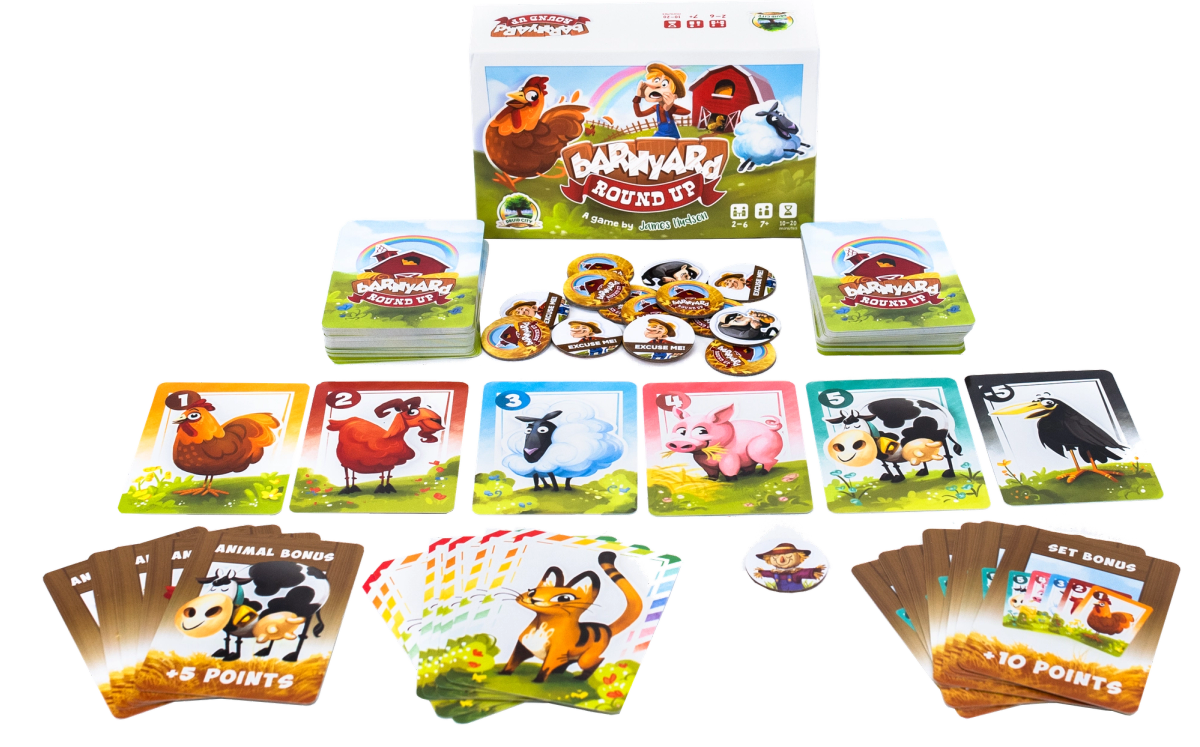 Family bluffing card game, aimed at parents and adults that are bored playing old typical games. Fun for both adults and kids, Barnyard Roundup is a game that doesn’t feel like a “task” to play for the adults and is on a level a kid would enjoy.