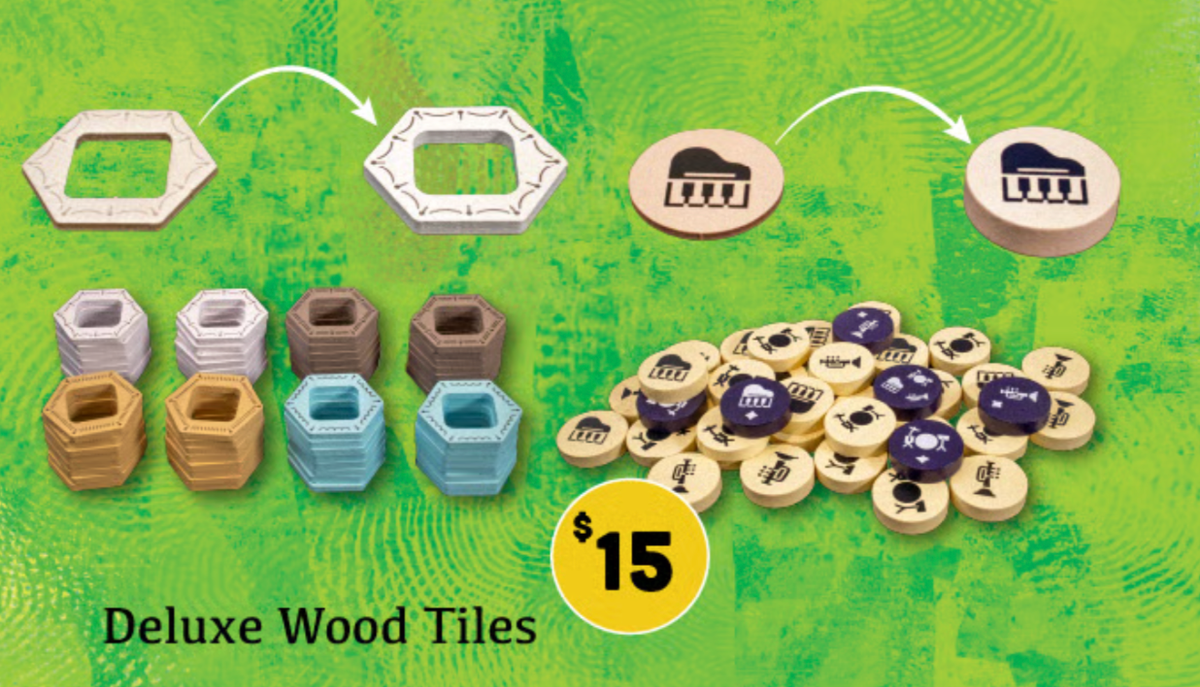 Upgrade all 106 of your punchboard tiles to deluxe screen-printed wood tiles for the ultimate tactile experience.