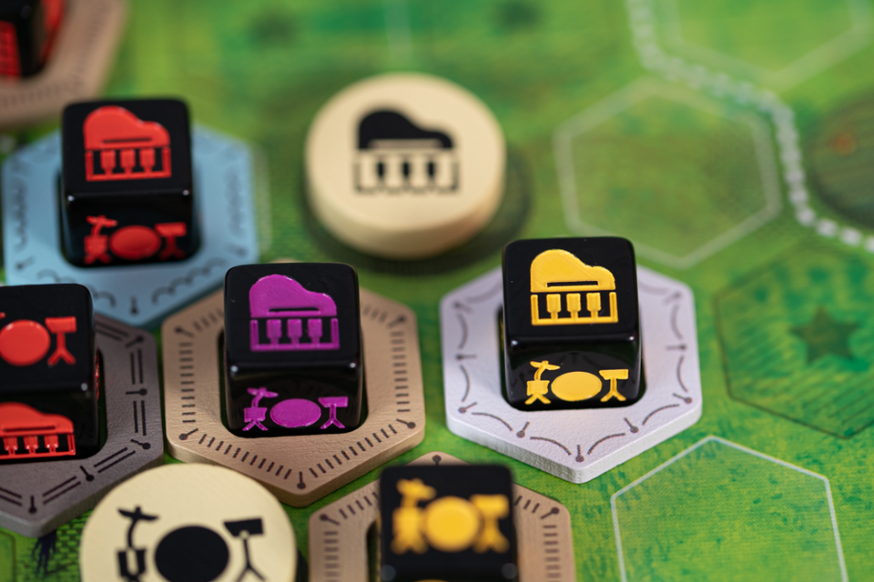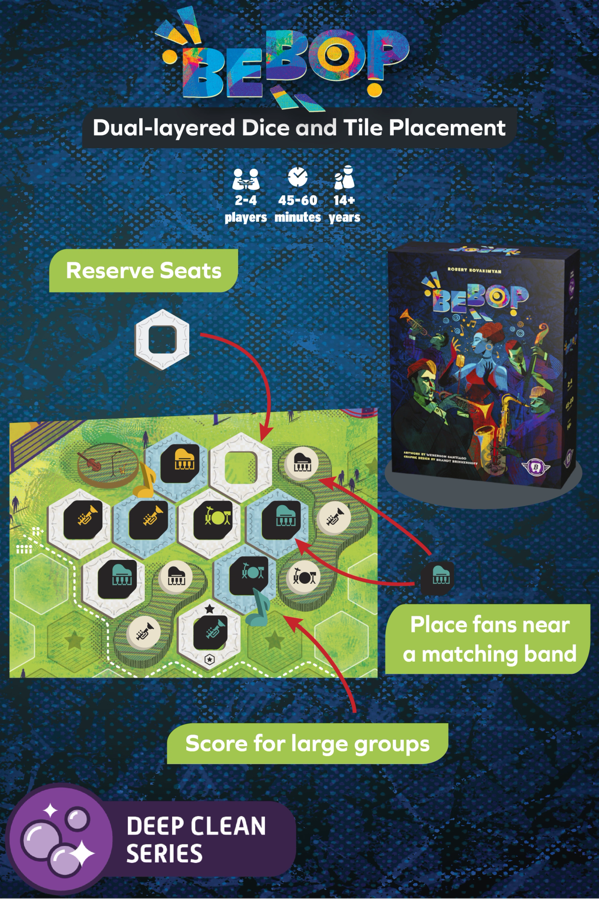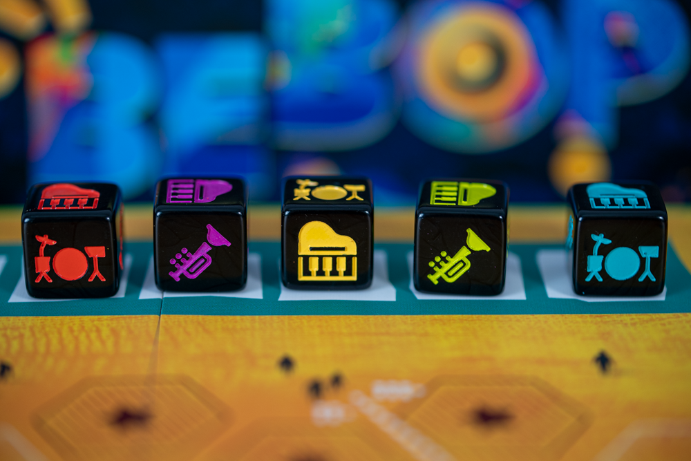 Bebop features area majority via the placement of tiles (reserved seats) and dice (fans). The player who most cleverly outmaneuvers the others on the shared board will get the best rating for their booking agency and thus the most points.