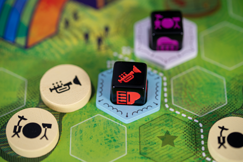 A Game You Can Jam to Over and Over Again: The strong player interaction alone would be enough to keep Bebop fresh from one session to the next. But the variable board setup and dice drafting options will additionally keep you on your toes as you juggle the three scoring strategies (family scoring, stage scoring, and family majority scoring). On top of that, we cooked up a second festival on the back side of the board PLUS two more festivals in the expansion — all of which provide a sensational variety of gameplay experiences.