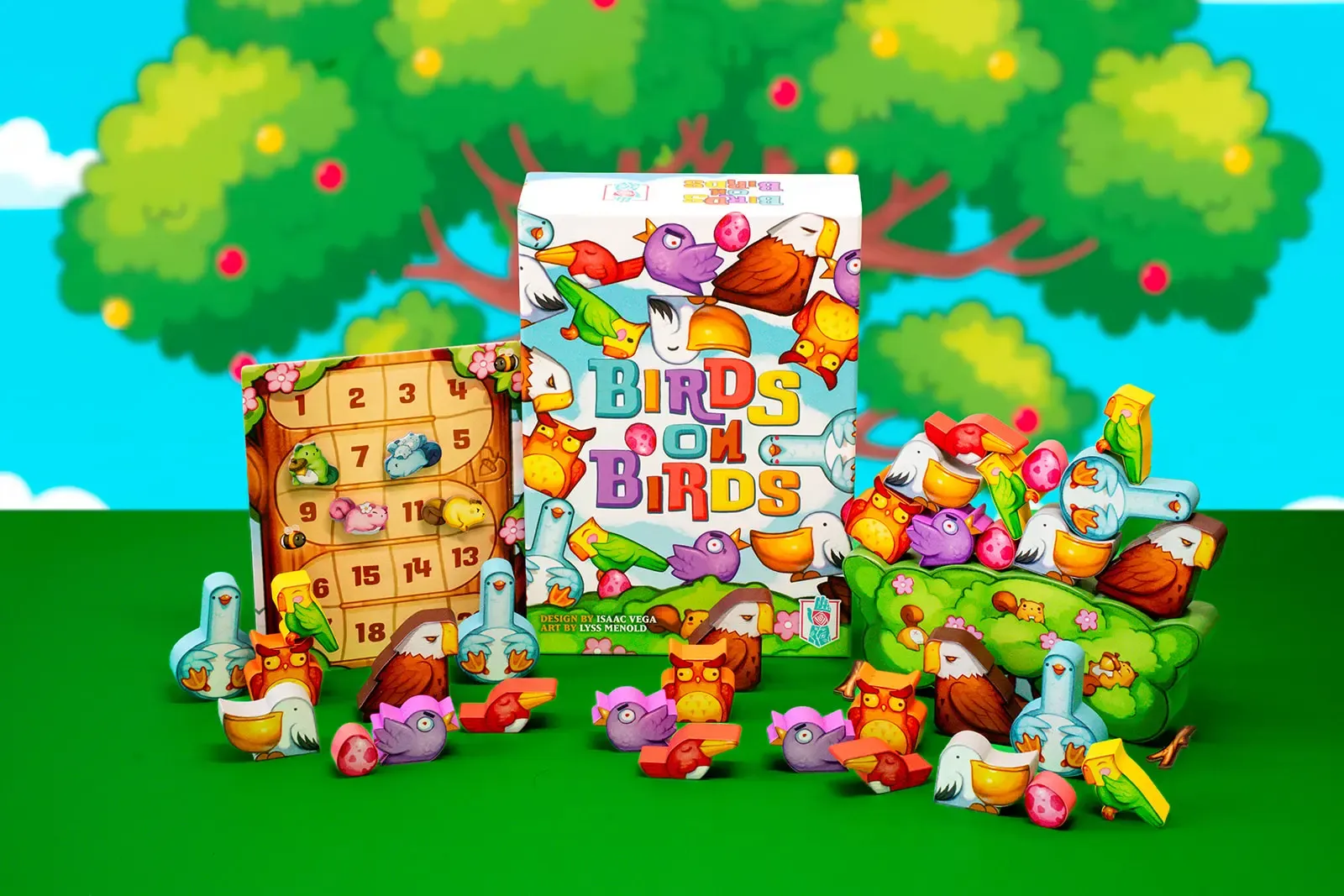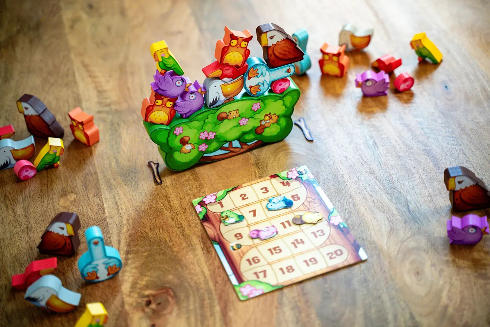 Components32 Wooden Birds(4 of each type)1 Wooden Tree Base2 Stabilizers4 Point Trackers1 Victory Point Track1 Rulebook