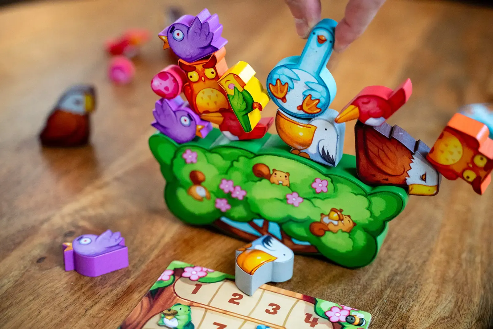 Expand your bird stacking chaos! Includes 4 ducks (1 for each player) and upgraded squirrel meeples!