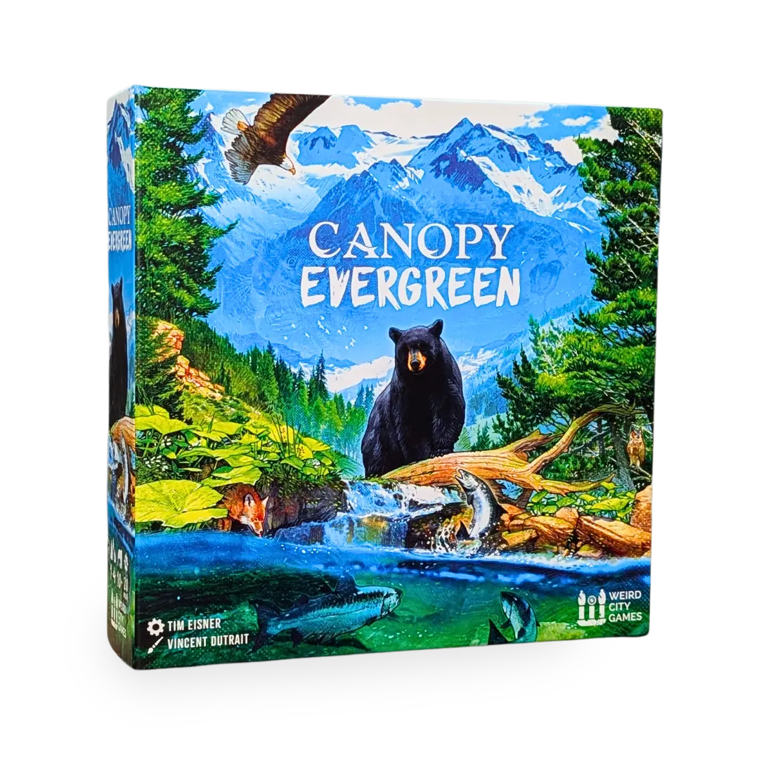 Grow a forest that comes to life in the Deluxe Edition of Canopy: Evergreen, the immersive nature game set in the Pacific Northwest. This upgraded version includes FSC-certified wooden wildlife tokens and ecosystem tiles, die-cut rainforest maps, and a deluxe box with full-art back.