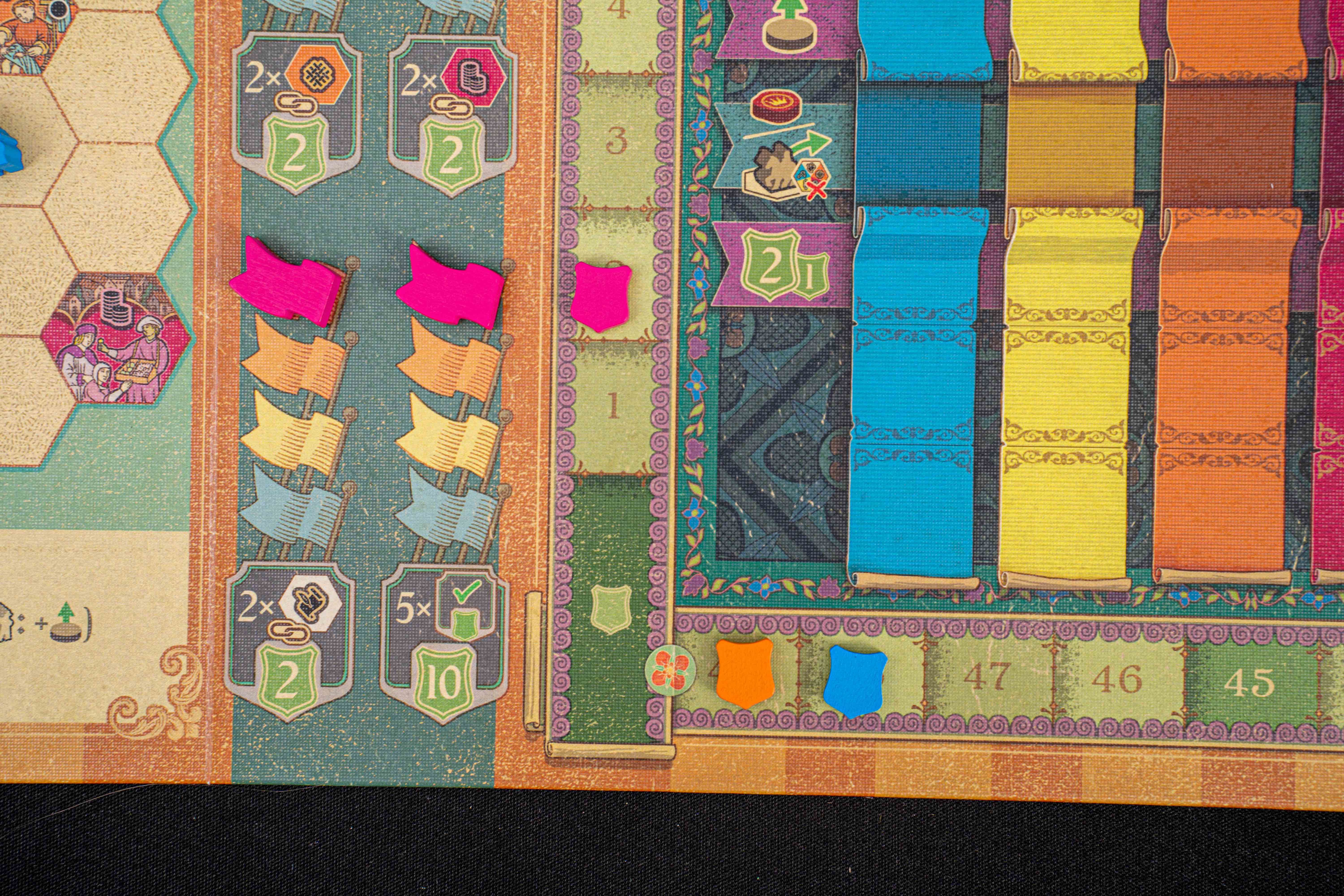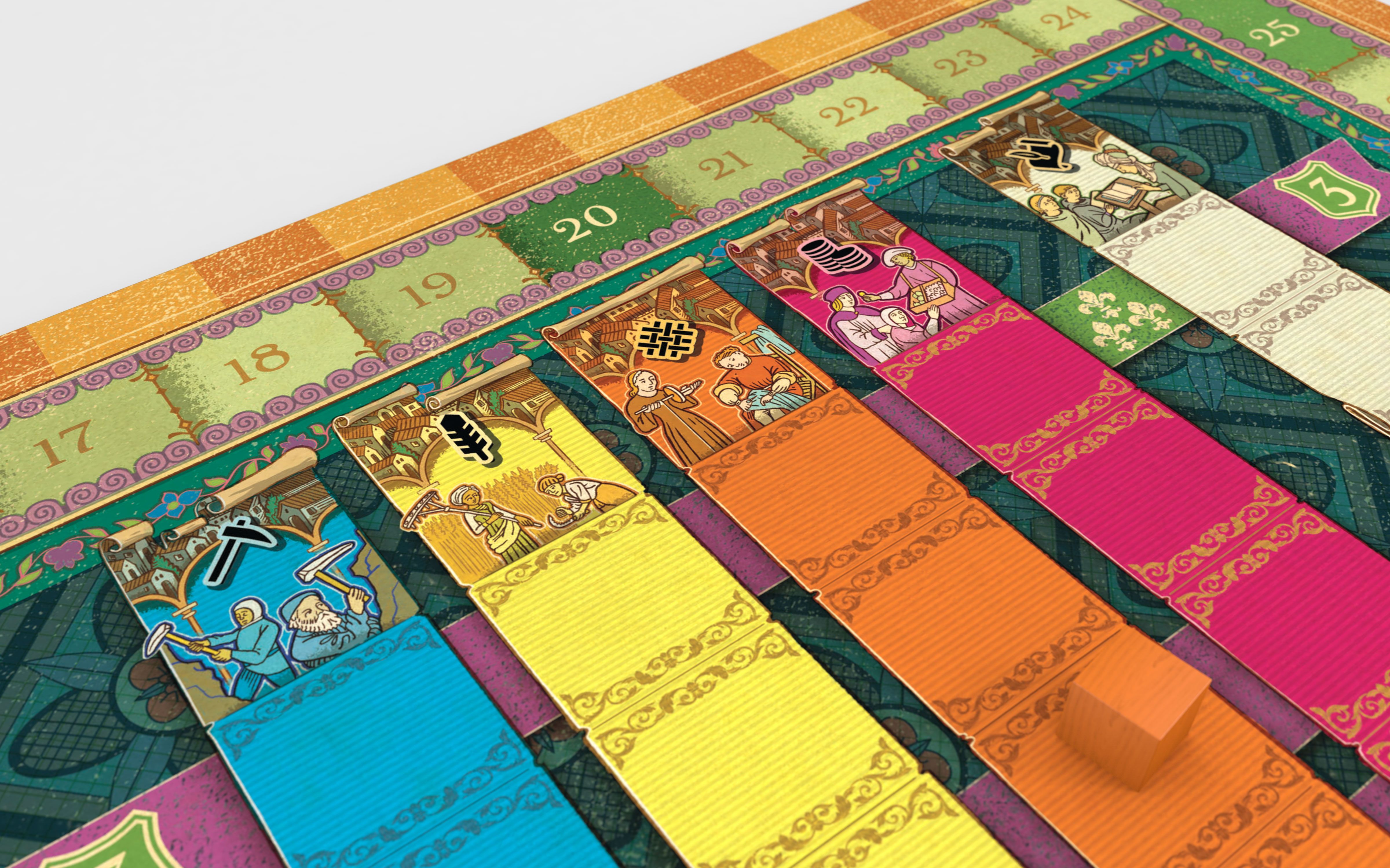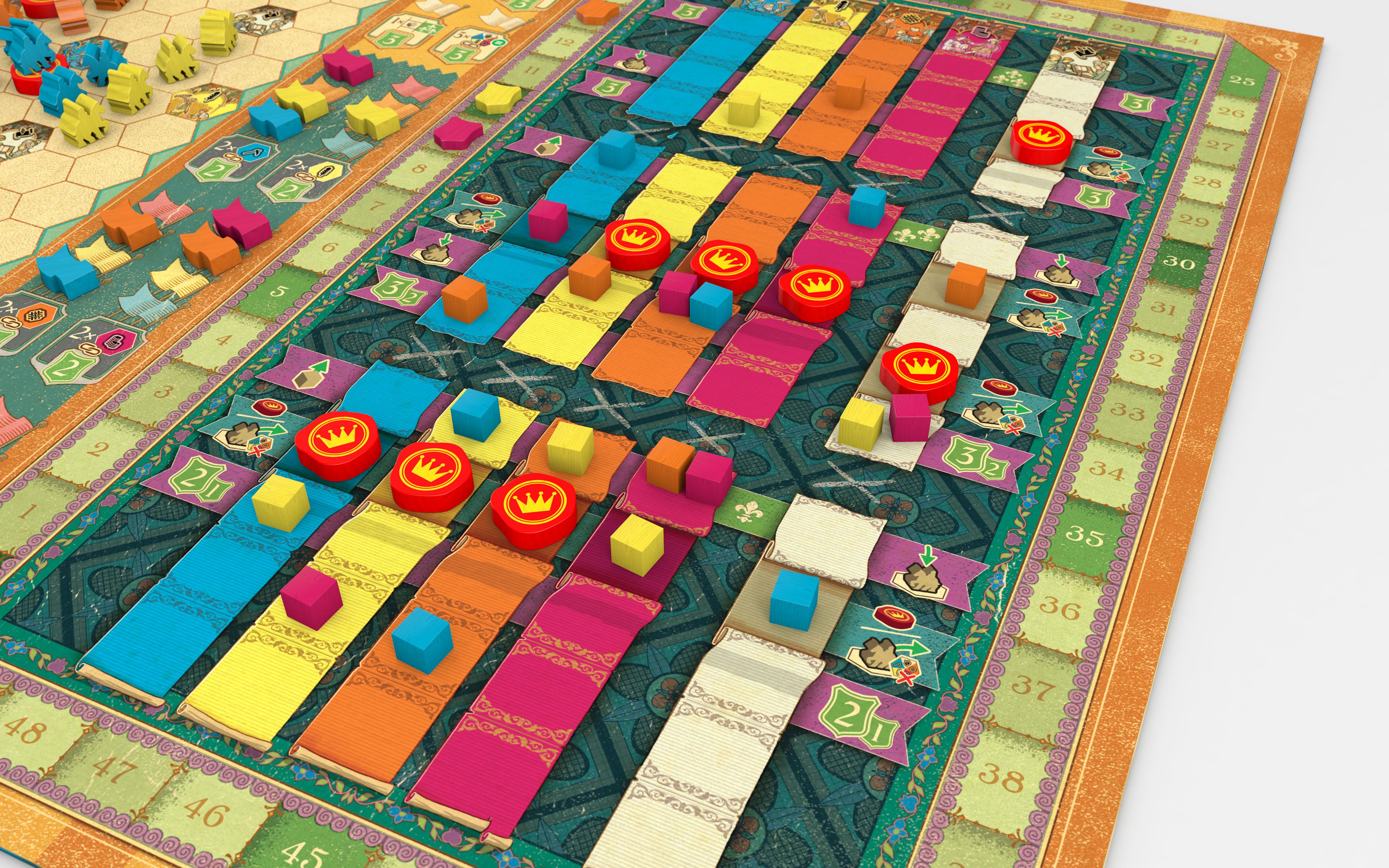 It ain’t called Cascadero for nothing! The unique, innovative interplay between the map and the tracks allows players to fire off cascading bonuses and combos for deliciously powerful turns. Your envoy placements can be even more potent as you spend valuable seals and gravitate to busy towns. Thanks to emergent player interaction, variable board and tile setups, and an advanced player mode, you’ll have loads of experiences to discover and enjoy across countless plays.