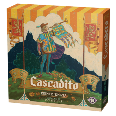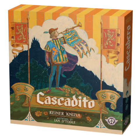 Cascadito is the smaller sibling to Reiner Knizia’s big box tile placement strategy game, Cascadero. Cascadito retains the challenging, combotastic core of Cascadero — the interplay between the map and book of successes — while providing a refreshingly unique and complementary experience. Many challenges and opportunities await the kingdom. Bandits threaten to overwhelm the towns, rivers present new modes of travel, trade continues to grow, and the borders must be defended.