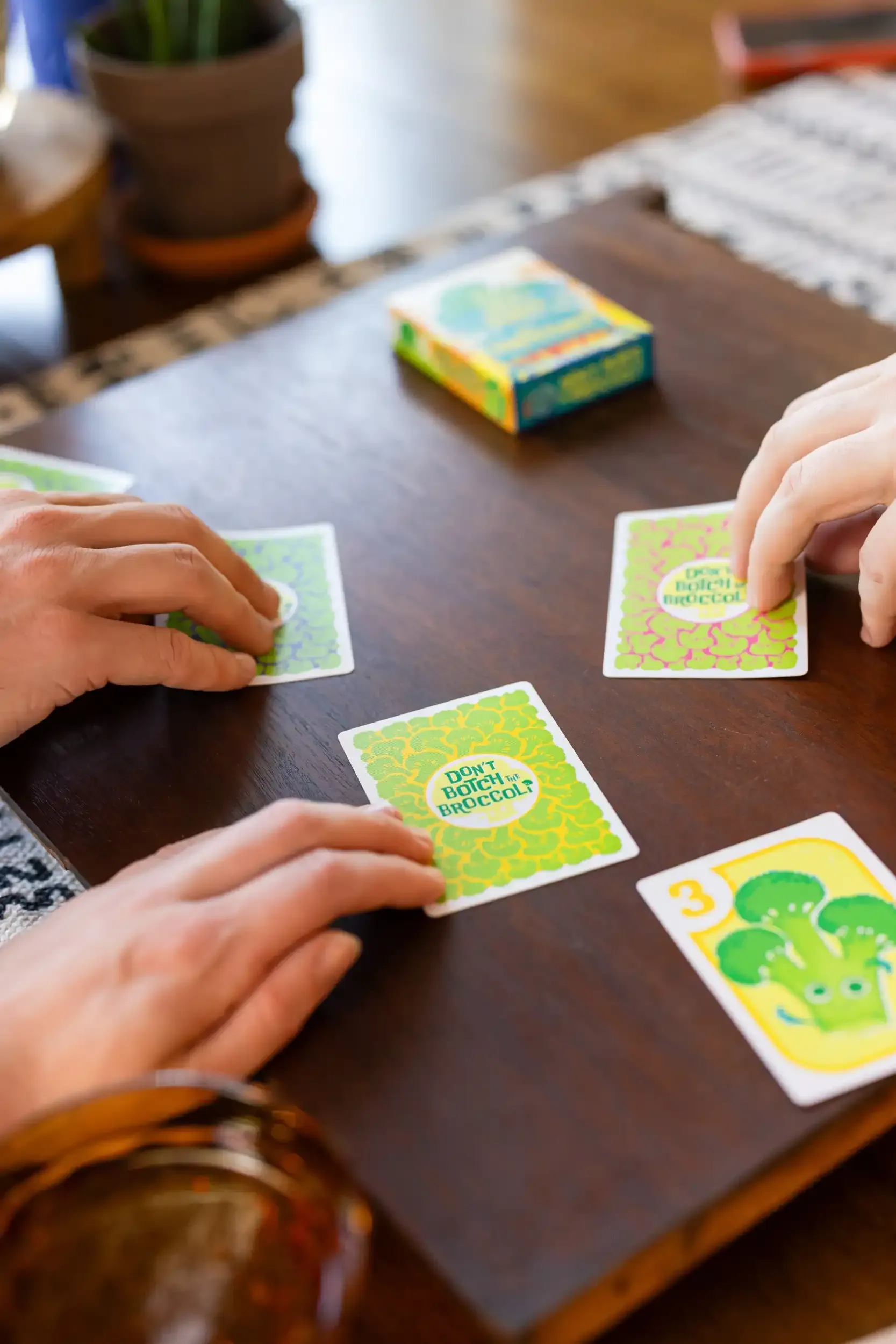 To win, find the right time to play each card and cook the most broccoli.