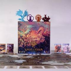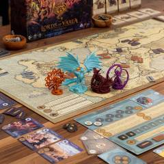 This base game includes 2 Dragons and 2 Generals (miniatures), 5 custom dice, 106 cards, 143 tokens, 1 large game board, and 4 player mats.