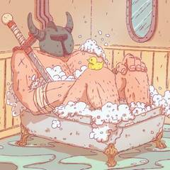 Enchanting ArtworkIf nothing else, Enchanted Ivy has allowed us to publish artwork featuring the magnificent Mystery Knight enjoying a bubble bath (illustrated by Wenyi Geng). We're going to need that framed.