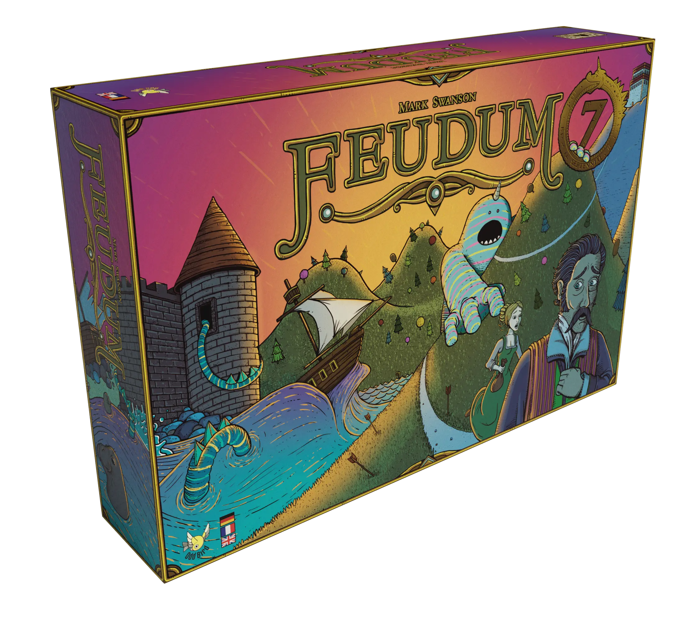 Feudum: Seals and Sirens is a surreal and slippery seafaring expansion. The game adds whirlpool discs, royal writs and an intoxicating siren known as "Elizabeth Jane of the Shore!