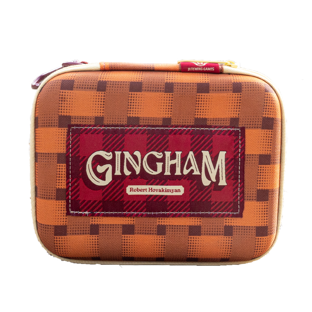 Maximize the portability of Gingham with this custom travel case and carabiner. Clip it on or toss it into your bag without any fear of component damage. Note: This case holds all components (including the deluxe upgrades) and fits inside the Gingham game box for easy shelf storage.