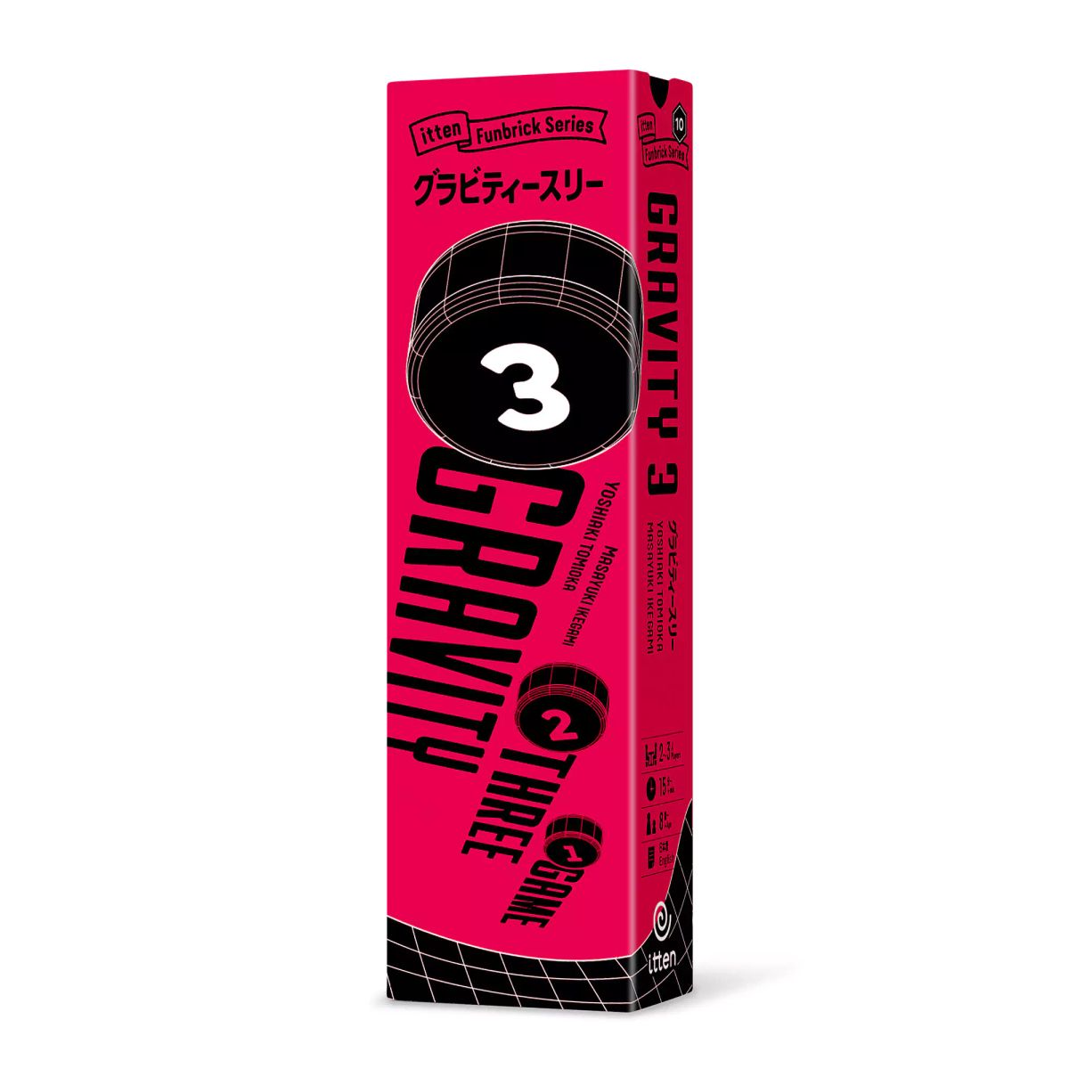 Gravity Three is a unique game based on the law of gravity. Three games for up to three players using weights with different masses.