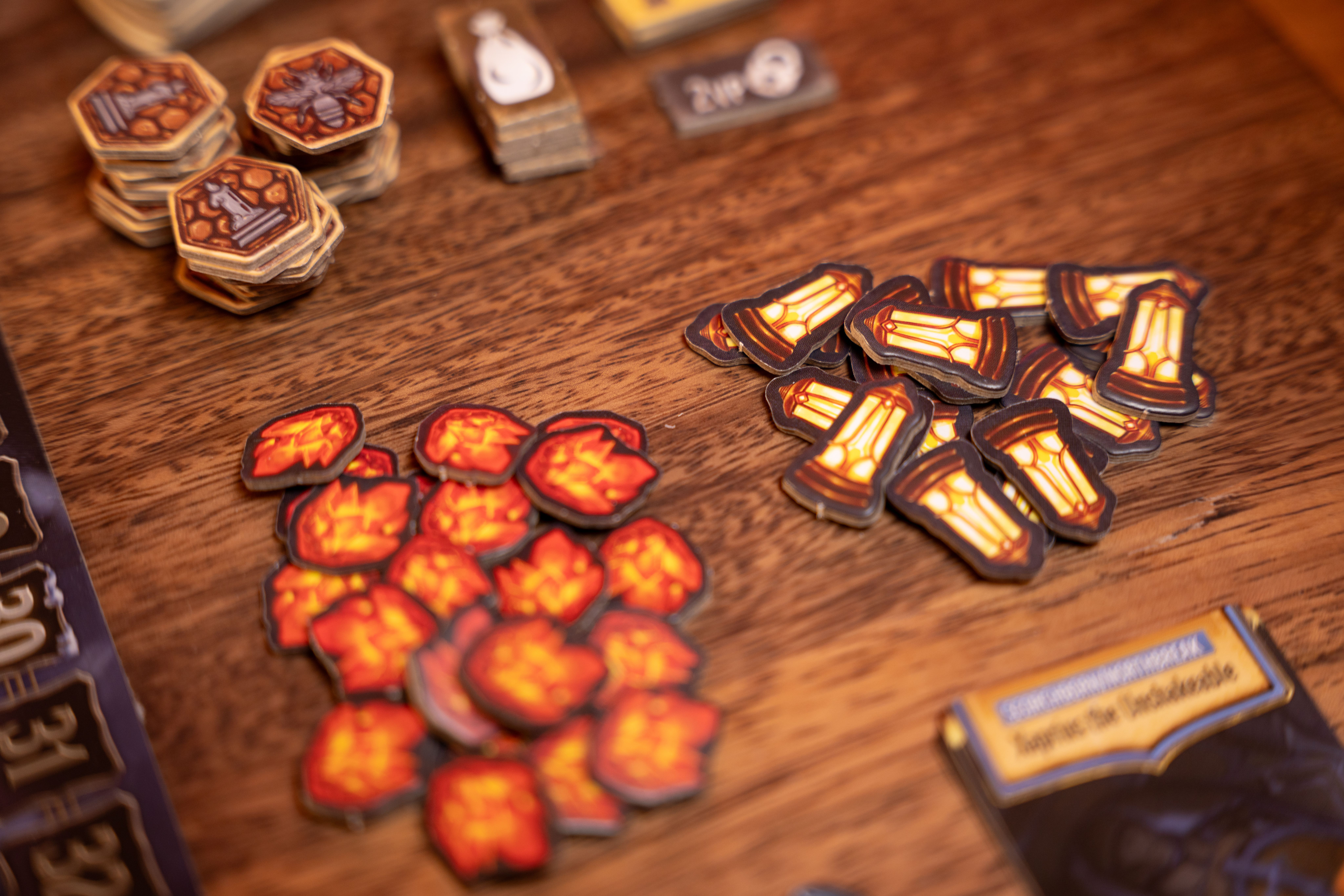 These upgraded metal coins are absolutely top notch and replace the cardboard coins in the standard game.