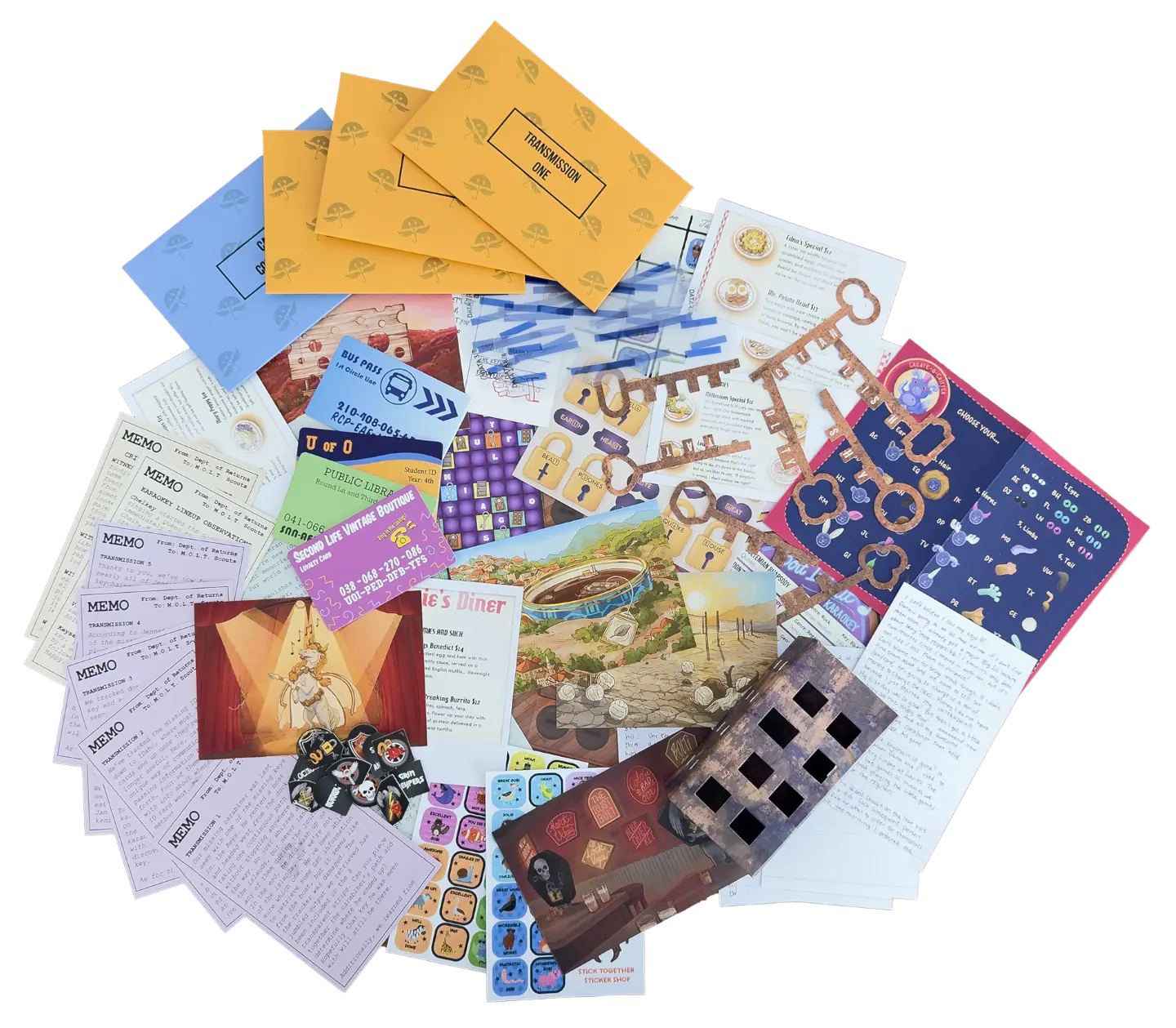 Finders Keypers features five chapters of beautifully-illustrated, whimsical puzzle gameplay. The components include an assortment of journal entries, witness statements, and documents, accompanied by an abundance of odds and ends.