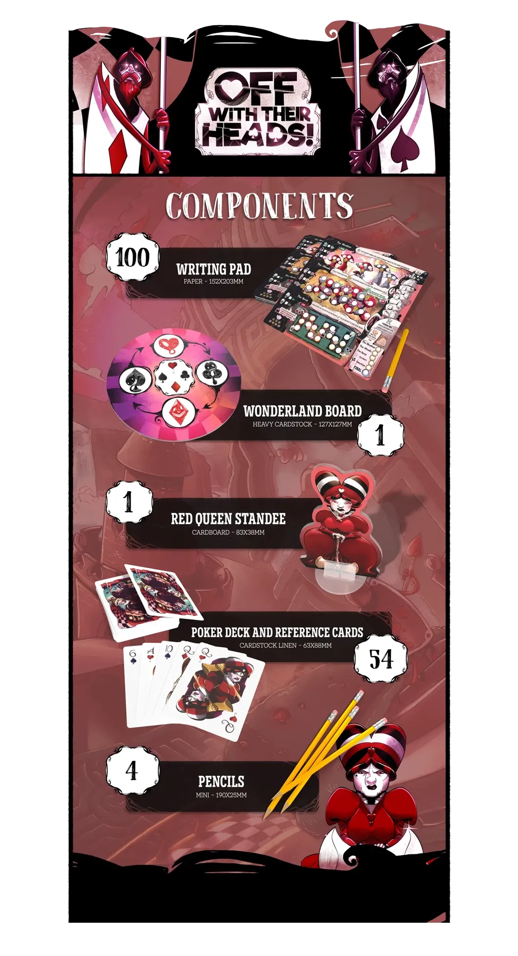 This is the base game with 100 writepad sheets and a full deck of Wonderland playing cards!