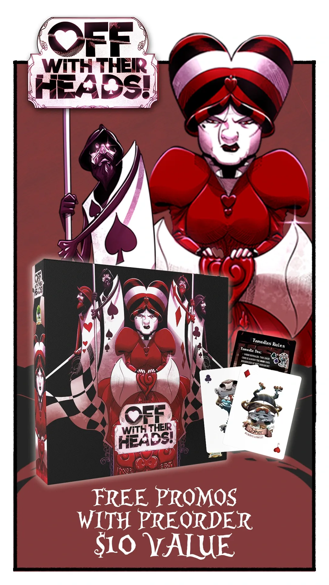 As a special thanks to those of you pre-ordering Off With Their Heads!, get the Joker and Tweedles promo cards included free.