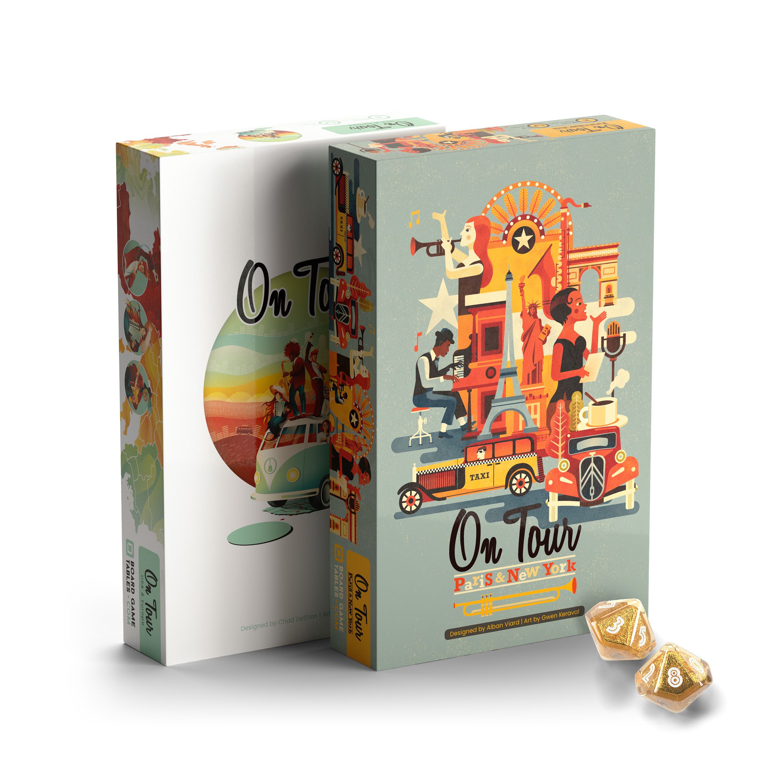 On Tour: Paris & New York is the standalone sequel to On Tour: USA & Europe. Both new maps keep the same base roll & write mechanic. But, each adds a new way to connect distant regions and score thematic bonus points.