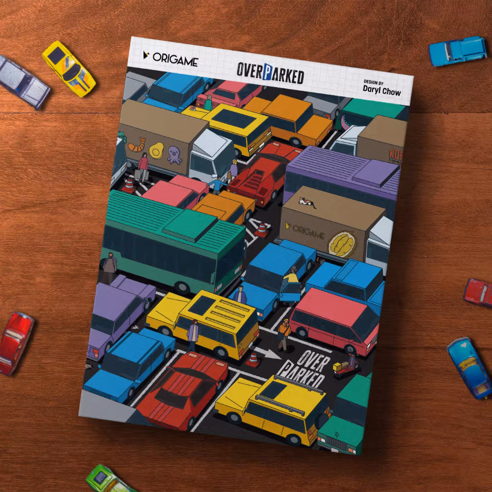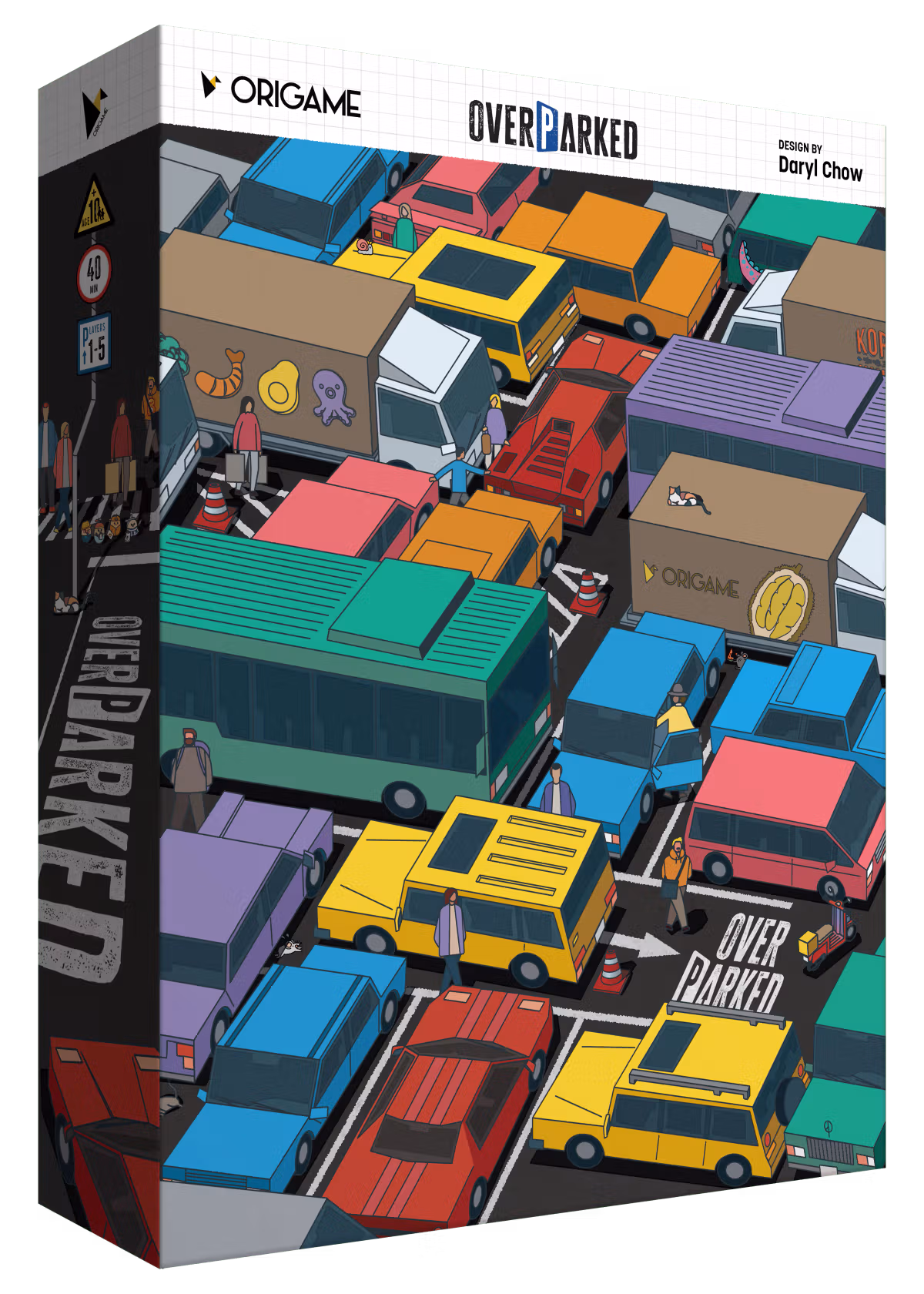 It's concert day, and vehicles are pouring in! Can you manage the traffic by strategically parking to score the most points? Players rotate the steering wheel to determine incoming vehicles, then place them wisely in their parking lots. The game ends when a player runs out of space.From designer Daryl Chow and illustrator TANSAN, Overparked offers a unique puzzle strategy experience!
