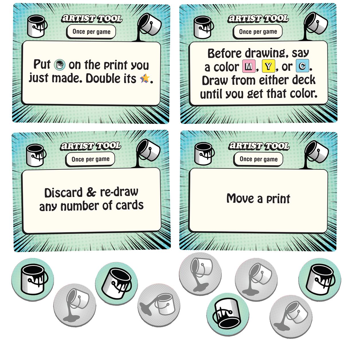4 Artist Tool Cards and 9 Paint Bucket Tokens