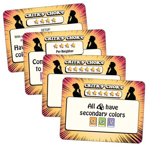 6 Foreground Cards, 6 Background Cards, 4 Artist Tool Cards, 9 Paint Bucket Tokens, 4 Critics' Choice Cards