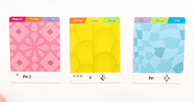 Also, depending on which cards you combine you'll craft a unique scoring condition.