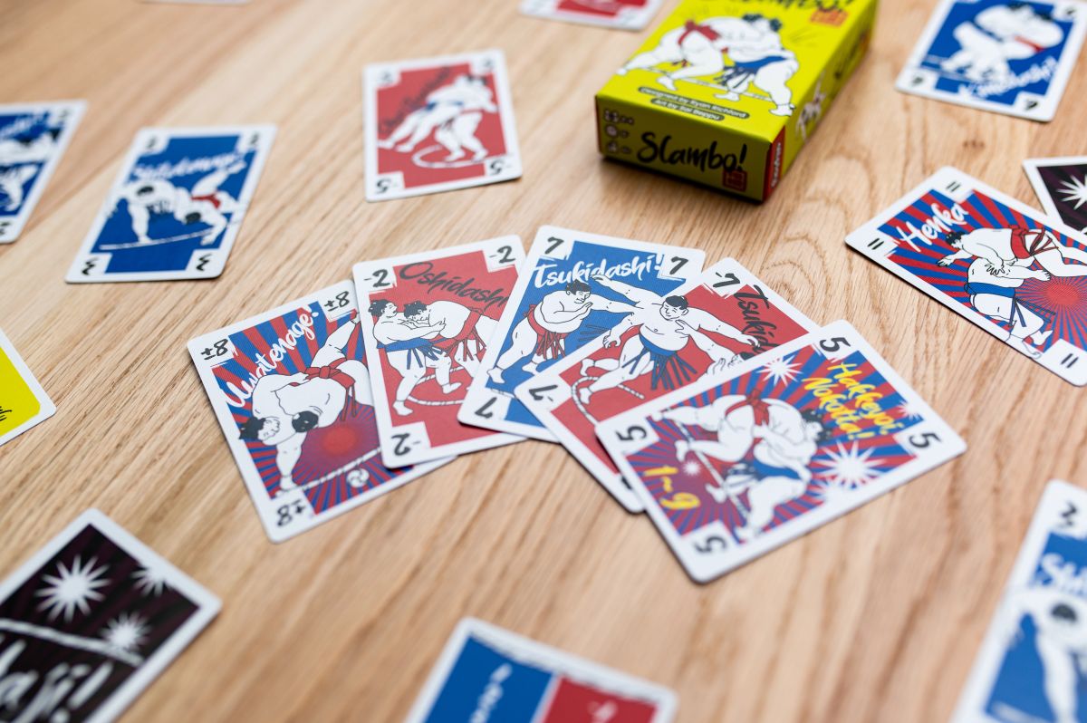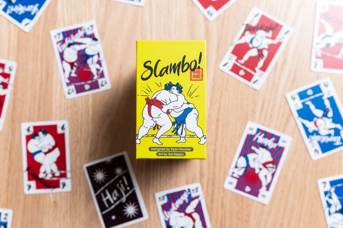 Playing numbered cards of two suits into the middle of the table just feels nostalgic. Slambo is a perfectly approachable game that gamers and non-gamers can play together and have a blast.