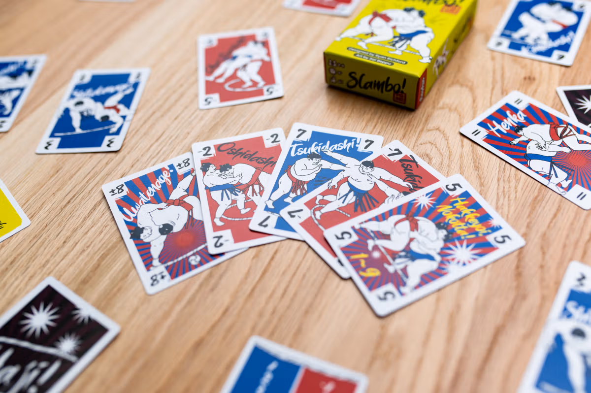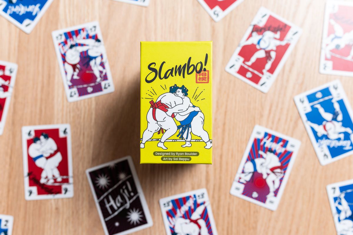 Playing numbered cards of two suits into the middle of the table just feels nostalgic. Slambo is a perfectly approachable game that gamers and non-gamers can play together and have a blast.