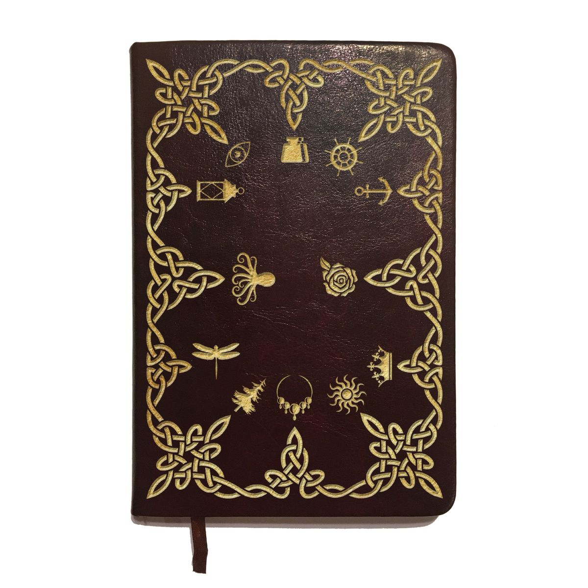 This faux leather journal with gold foil stamping is a great way to take notes while you puzzle! The cover design and inscription include a bonus puzzle in the world of The Emerald Flame.