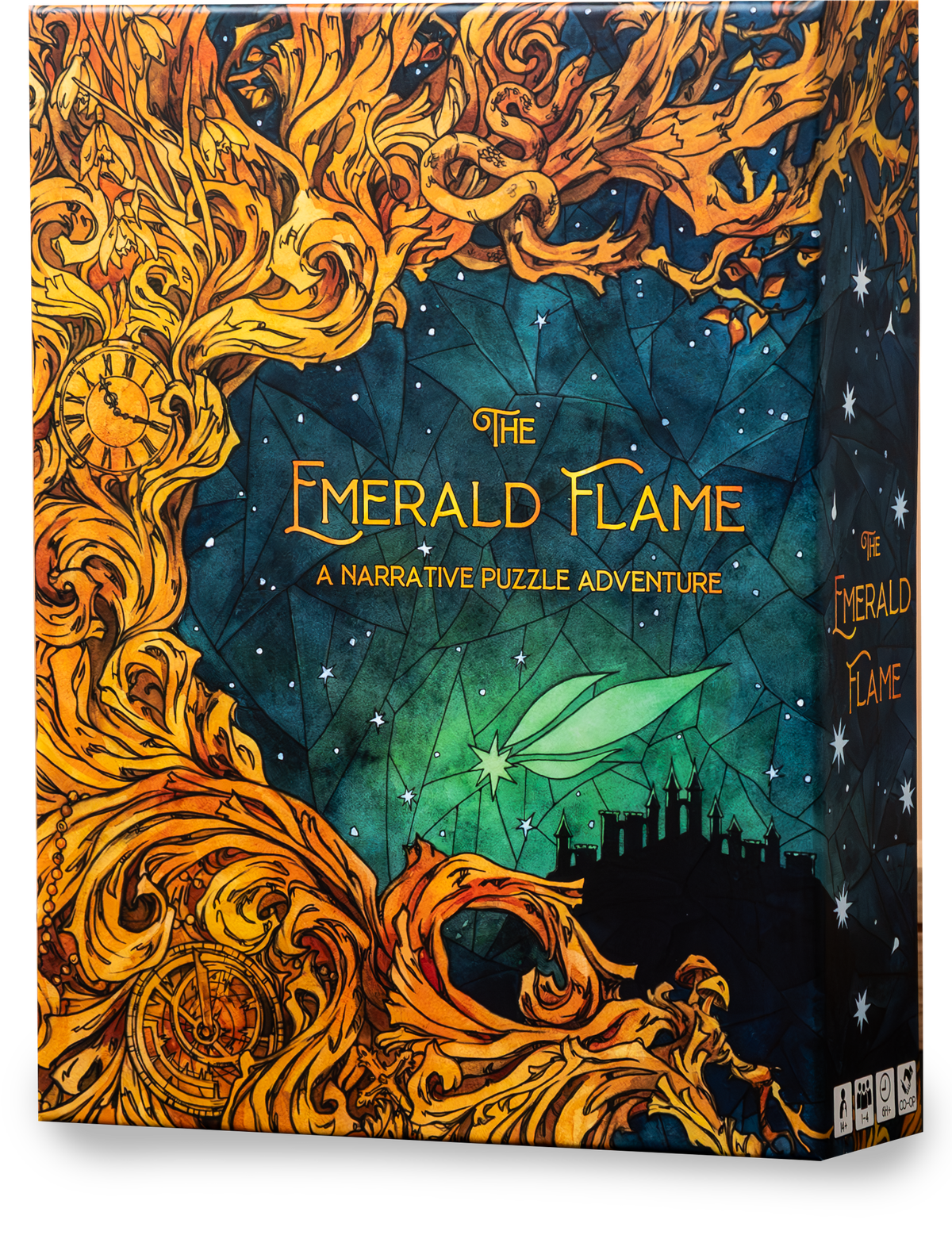 The Emerald Flame combines history, fantasy, and interactive storytelling to tell a compelling narrative that is driven forward by delightfully unique and original puzzles. Filled with hand-drawn watercolor illustrations and a variety of physical objects, this game's fiendishly clever challenges use the materials to the maximum, creating a journey full of satisfying and memorable "aha" moments.